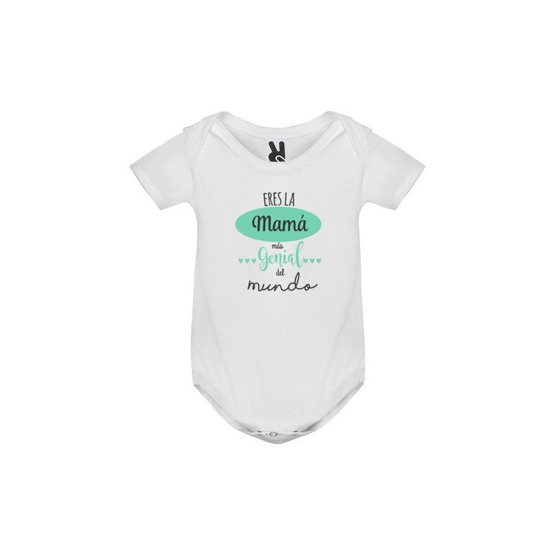 Body de bebé con manga corta de punto liso. Cuello redondo y bajo ribeteado en canalé 1x1. Cierre con botones a presión en la entrepierna. Hombro de apertura cruzada.