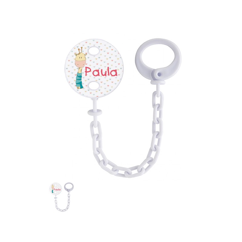 Chupetero personalizado en la zona del clip. Un básico para bebés y niños que usan chupete, de forma que no se pierda mientras no lo usan.