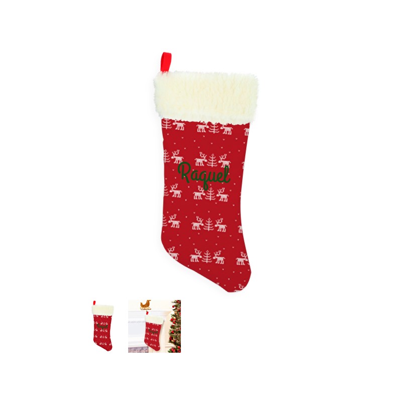 La Navidad es tiempo de tradiciones. Poner el árbol, las luces y no olvides de colocar tu calcetín navideño personalizado junto a la chimenea. Este modelo tiene el tamaño perfecto para que puedas meter en él los regalos. Es personalizable por una cara, la cara trasera es de color blanco.