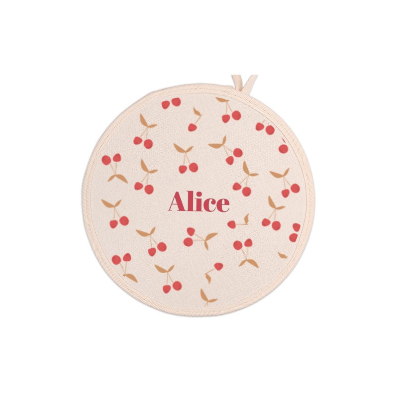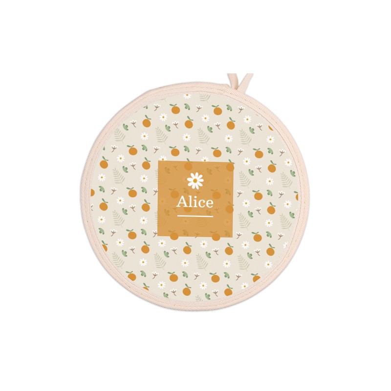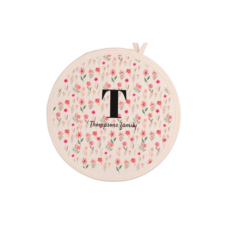 Tabla de cortar de 15 x 15 cm, en madera natural y con asa troquelada.