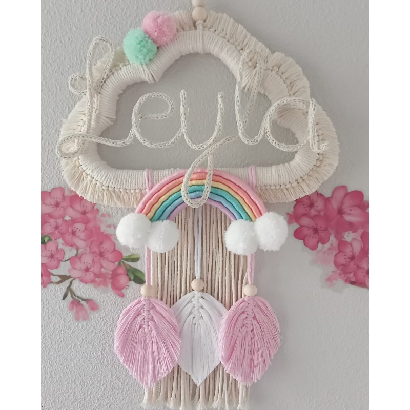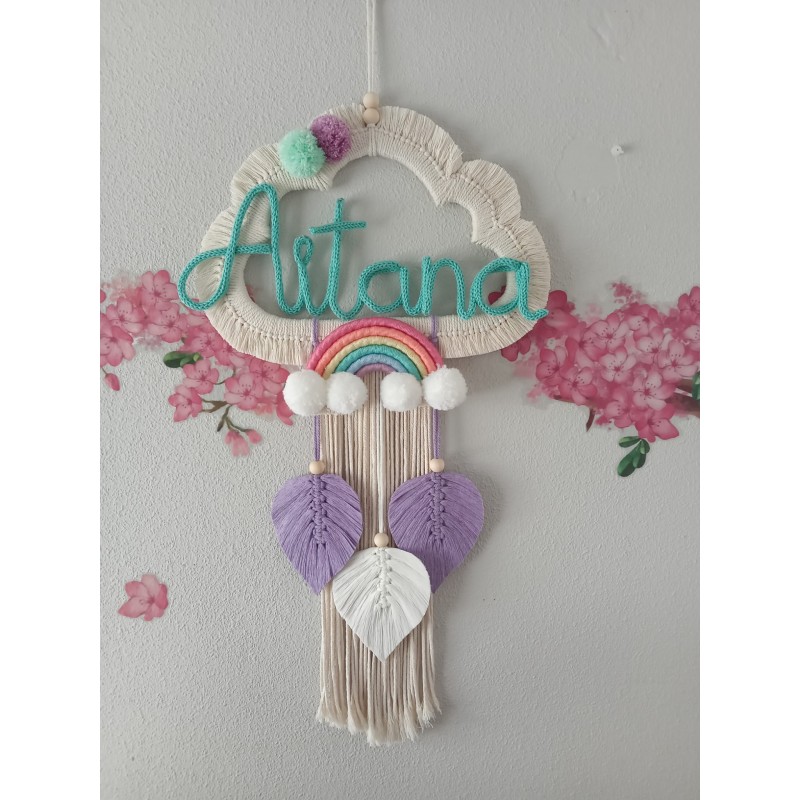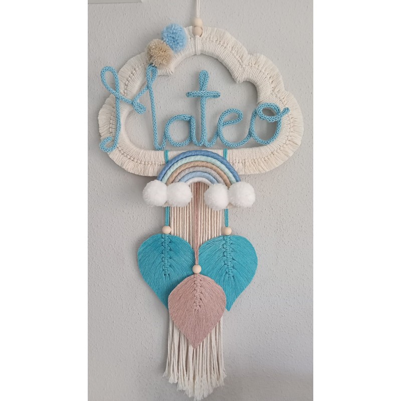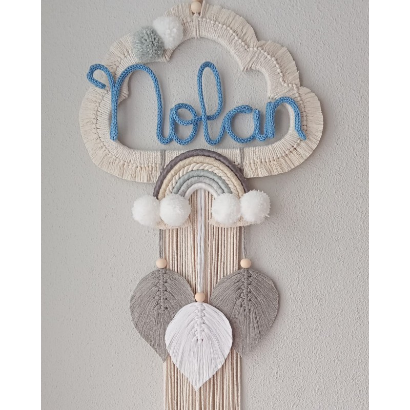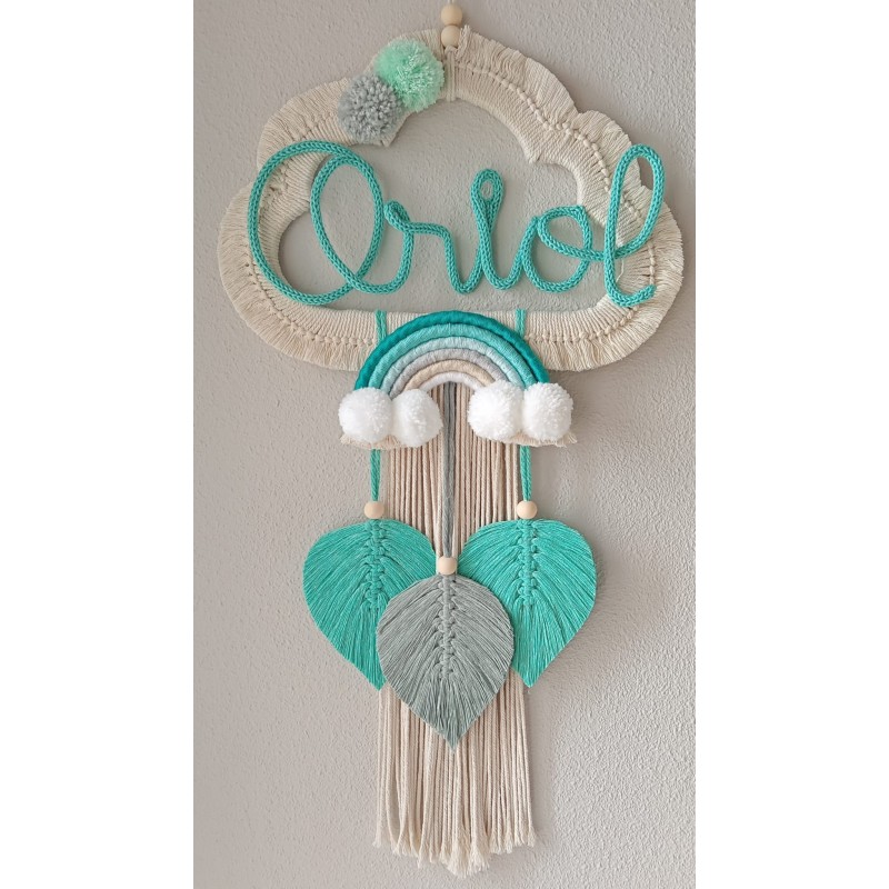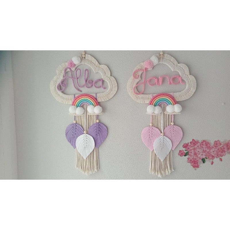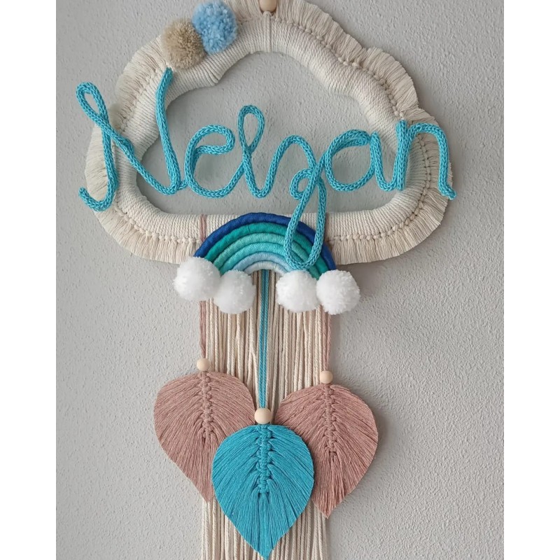 Atrapasueños hechos con la técnica de macramé, de madera e hilo de algodón natural, medidas: 35*65 cm.