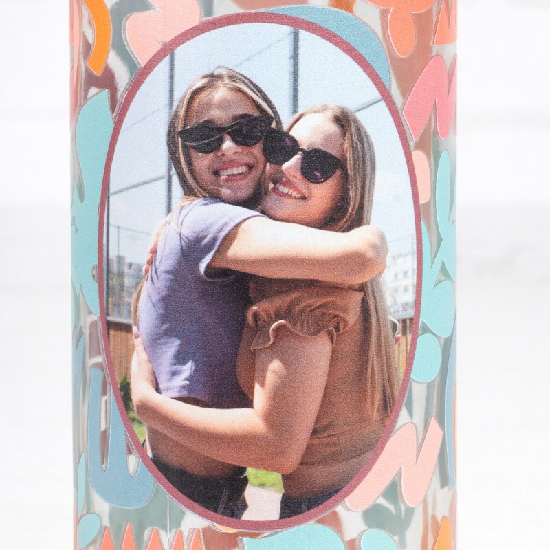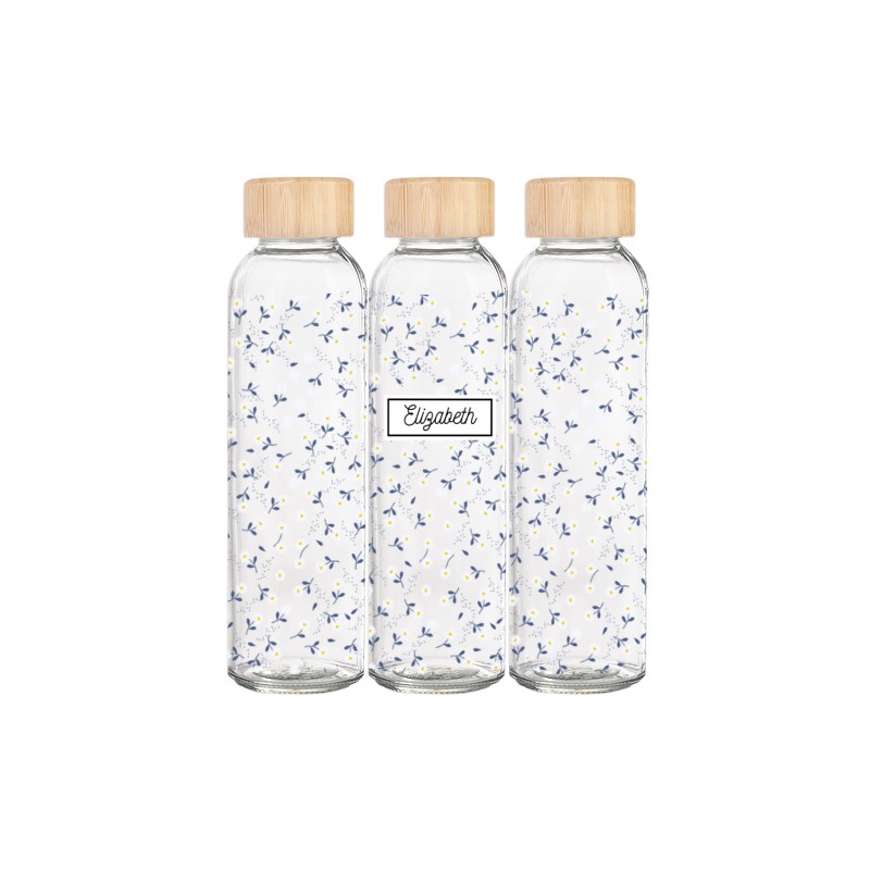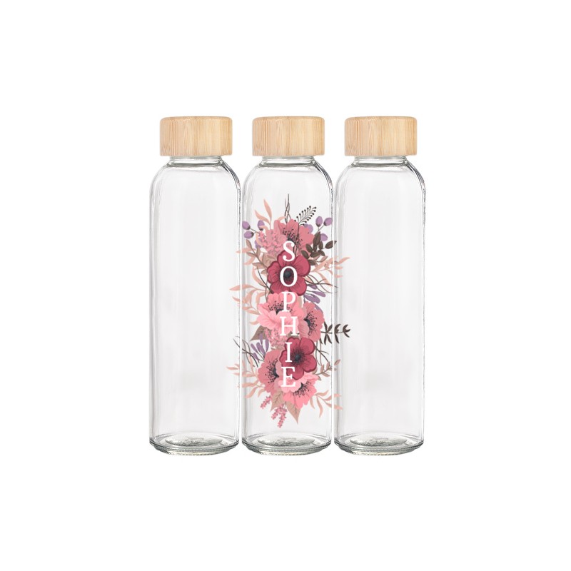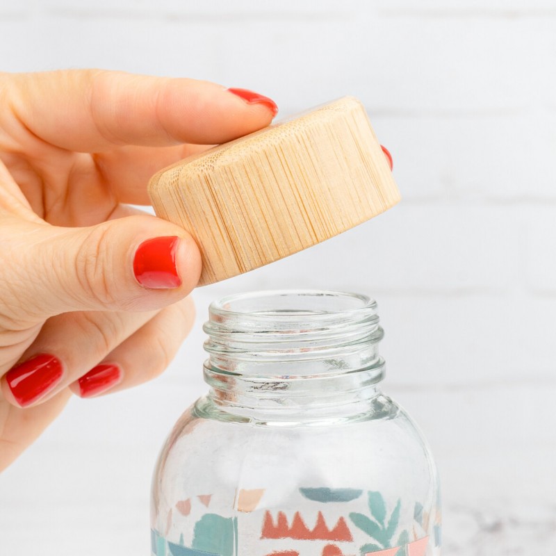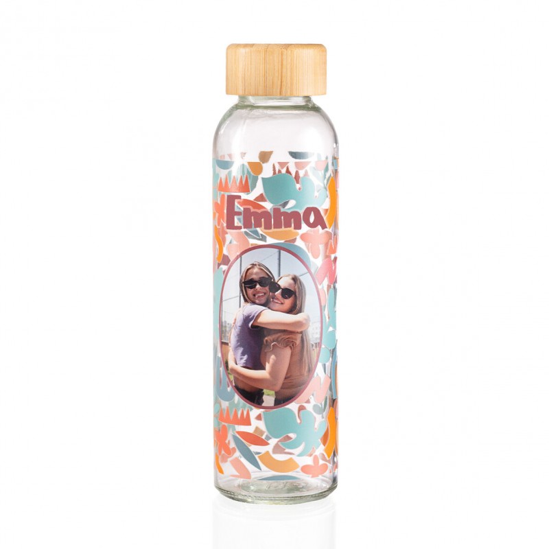 Nuestras botellas de cristal con tapón a rosca de bambú son totalmente personalizables con tus fotos, diseños, dibujos o textos favoritos. ¡Hay miles de opciones!