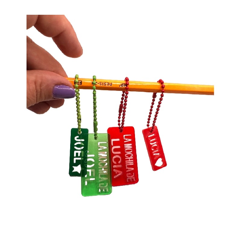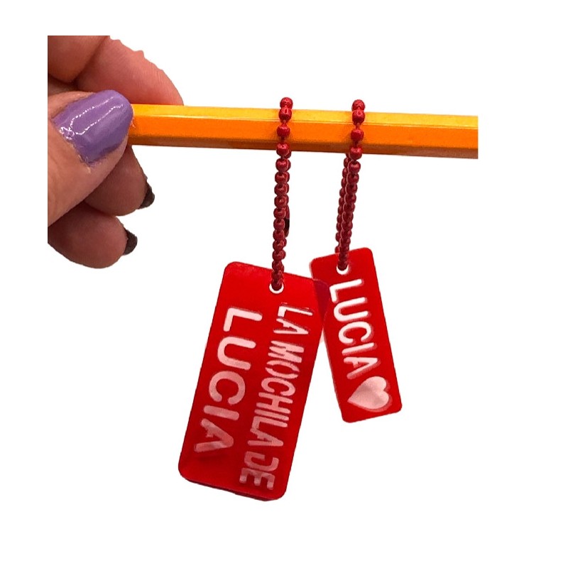 Lote identificador mochila y estuche - Plexy o metacrilato 50x30 mm y 40x15 mm ( Personalizado)