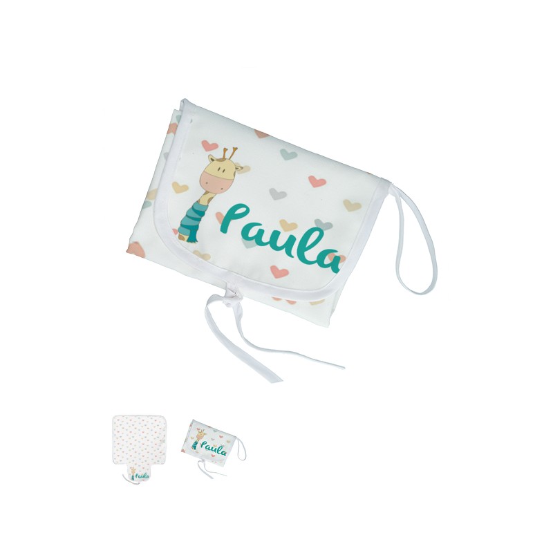 Tiene el interior plastificado, para poder limpiar fácil y rápidamente en caso de mancharse. Este cambiador plegable personalizado es ligero, cómodo y fácil de transportar. Un básico para padres en el momento en que salen de casa con un bebé.