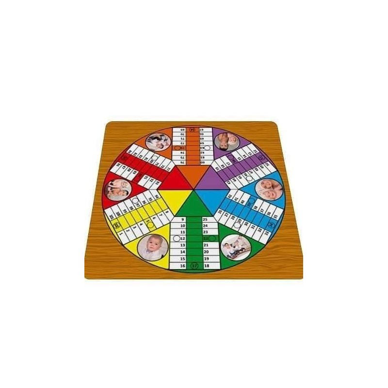 ¡Un parchís con fotos! Por muchos años que pasen, el parchís siempre será el rey de todos los juegos de mesa. Una vez que empiezas una partida, ¡no puedes parar hasta terminar! Y si además, es un parchís personalizado, mucho más divertido. Puedes personalizar cada "casa" del tablero, para que cada jugador tenga su zona totalmente personalizada, con su foto o imagen preferida.