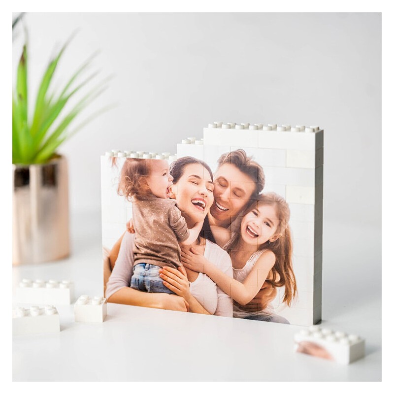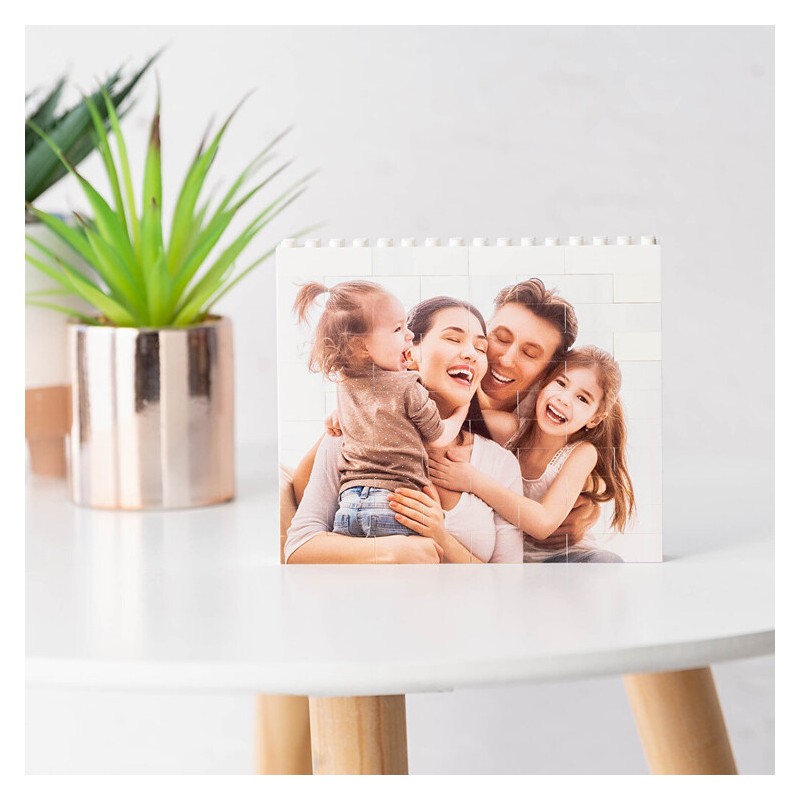 Tus peques van a alucinar a la vez que disfrutarán del nuevo Puzzle Block personalizado. Porque podrán utilizarlo también junto con sus jueguetes favoritos, ya que al ser piezas compatibles con LEGO podrán divertirse con el nuevo portafotos que habéis elegido y personalizado por y para vosotros. Las tardes de juego serán más divertidas que nunca.