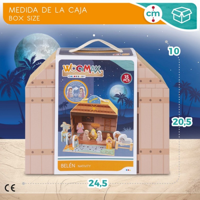 El maletín portátil está fabricado en madera natural, reciclable y ecológica, con acabados redondeados y suaves para garantizar la seguridad de los niños. Las piezas cuentan con impresión a doble cara. Este juguete está recomendado para niños mayores de 3 años. Tu peque disfrutará de la Navidad aún más con su propio belén de juguete. ¡A jugar con WOOMAX!