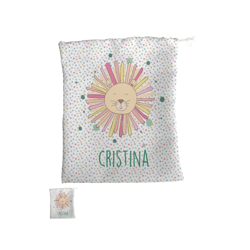 Esta bolsa de tela de merienda personalizada es ideal para que los peques puedan llevar su tentempié al cole. Tiene el tamaño perfecto y una capacidad de dos litros, aproximadamente. Además tiene el cierre con cuerda, para una mayor seguridad y que así no pierda nada durante su transporte.