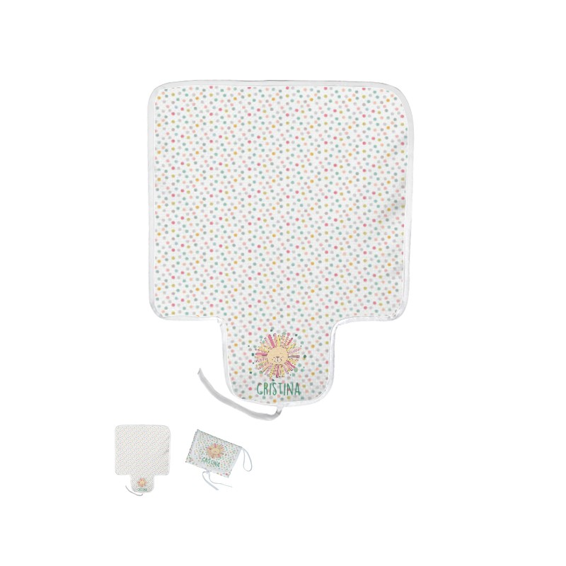 Tiene el interior plastificado, para poder limpiar fácil y rápidamente en caso de mancharse. Este cambiador plegable personalizado es ligero, cómodo y fácil de transportar. Un básico para padres en el momento en que salen de casa con un bebé.