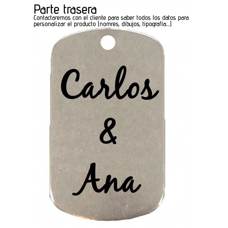 Llavero personalizado bañado en plata. Con posibilidad de escribir el texto que más os guste en la parte trasera