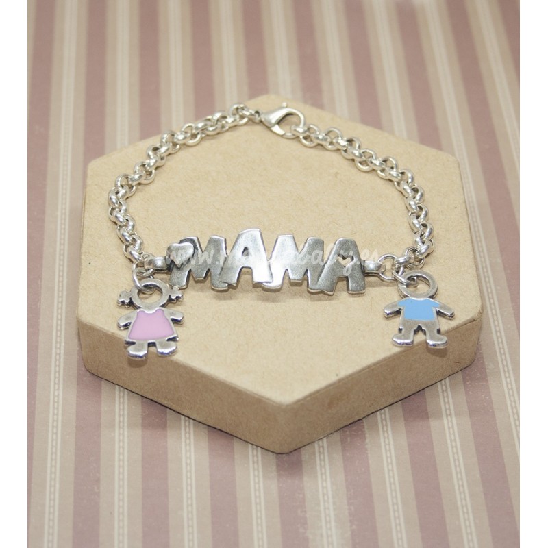 Este modelo se envía con caja y decoración, siempre adaptado al texto que se ponga en la pulsera (mama, abuela, tía....)