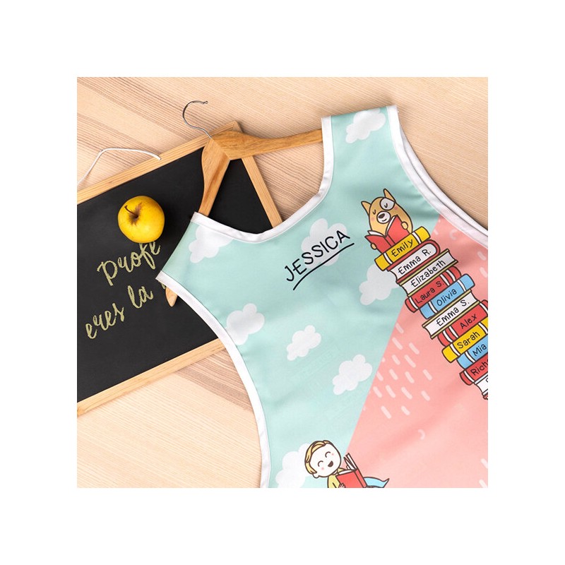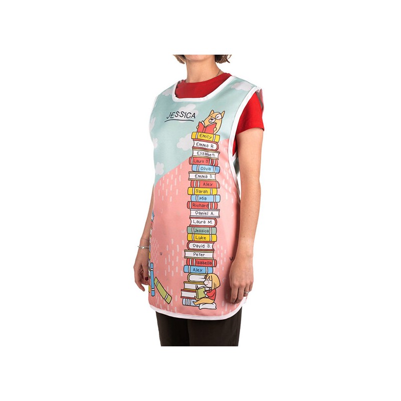 Este delantal de doble cara es un regalo muy popular para quien busca delantales personalizados para profesoras. Disponemos de varios diseños relacionados con educadores, maestros y profesoras. Se suele regalar en el final de curso, de parte de todos los alumnos. Por supuesto, sirve para muchos otros oficios y profesiones, pero sin duda un diseño tipo delantal profesora es de lo más solicitado.