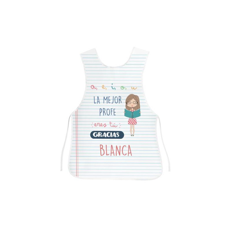 Este delantal de doble cara es un regalo muy popular para quien busca delantales personalizados para profesoras. Disponemos de varios diseños relacionados con educadores, maestros y profesoras. Se suele regalar en el final de curso, de parte de todos los alumnos. Por supuesto, sirve para muchos otros oficios y profesiones, pero sin duda un diseño tipo delantal profesora es de lo más solicitado.