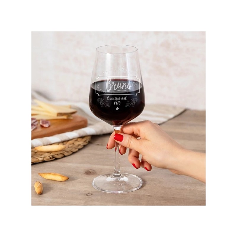 Si eres amante de un buen vino estás en el lugar indicado. El vino es una bebida perfecta para tomar tanto sólo o acompañado, y si una cenita tranquila acompañada de un buen vino sabe bien, con una copa de vino grabada, personalizada con tu nombre o una frase que te motive, todavía es mejor.