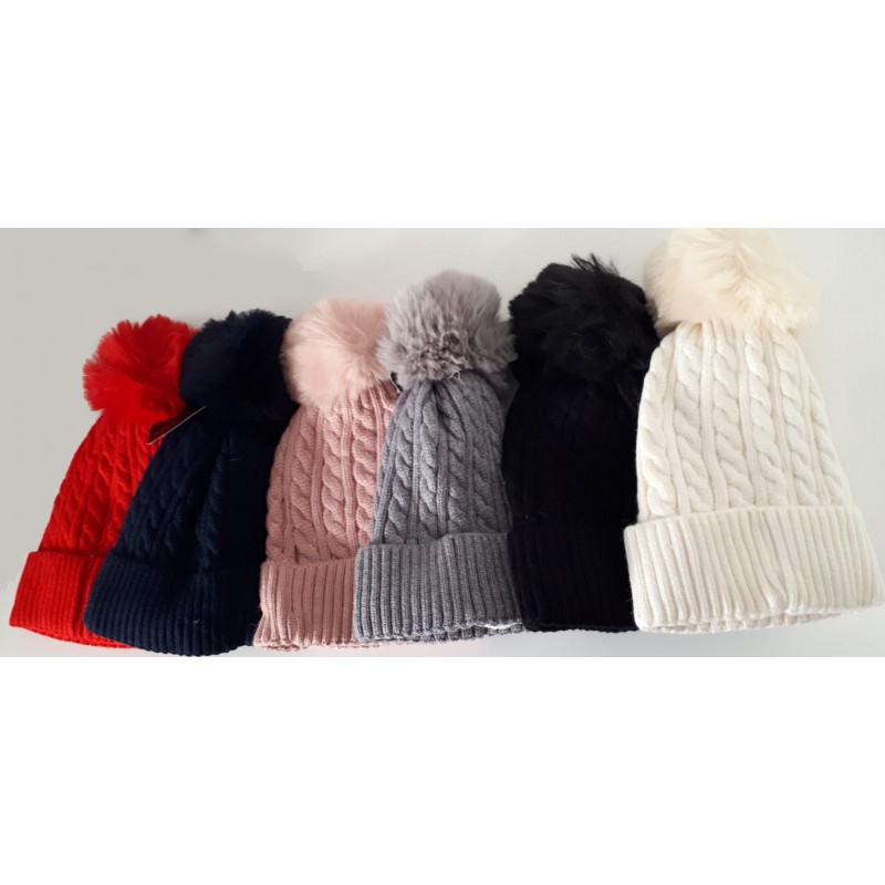 Gorro personalizado de punto acanalado. Borla de pelo sintético. Con borde vuelto. Tamaño niño